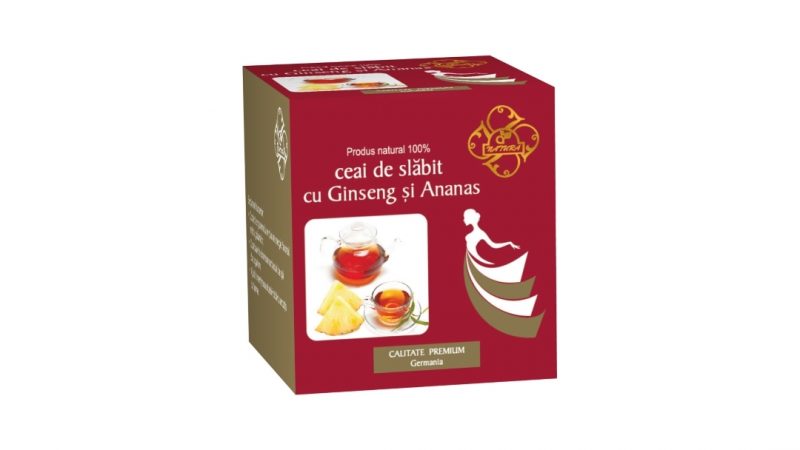 Ingrediente: un amestec natural de plante in proportii variabile, frunze de Senna (Cassia angustifolia), radacina de Ginseng siberian (Acanthopanax senticosus), ananas (Ananas comosus).