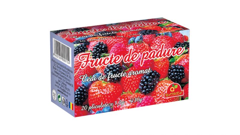 Ingrediente: pulpa si seminte de macese, hibiscus, alte plante si fructe in proportii variabile: mar, catina, porumbe, iarba de lamaie, frunze si mladite (afin, mur, zmeur, capsun), aroma fructe, fructe padure concentrat natural (3%), corector de aciditate-acid citric. Nu contine coloranti artificiali.