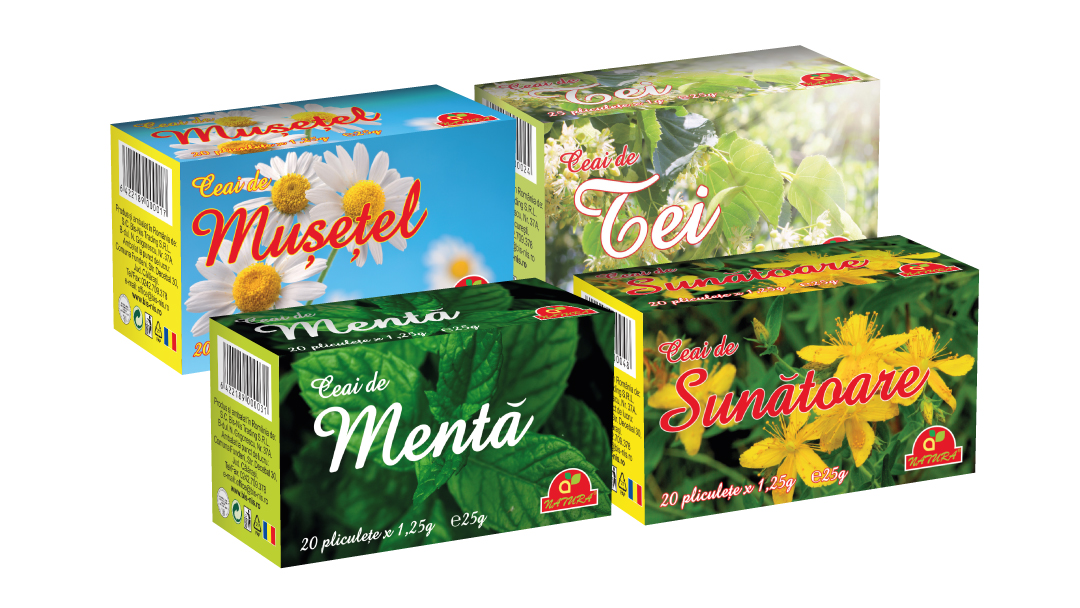 Pachet ceaiuri Natura (menta, musetel, sunatoare, tei)